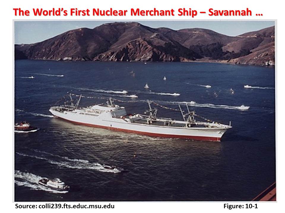 The world’s first nuclear powered merchant ship, the NS Savannah (Figure 10/1), is owned and maintained by the Maritime Administration and is licensed and regulated by the United States Nuclear Regulatory Commission.