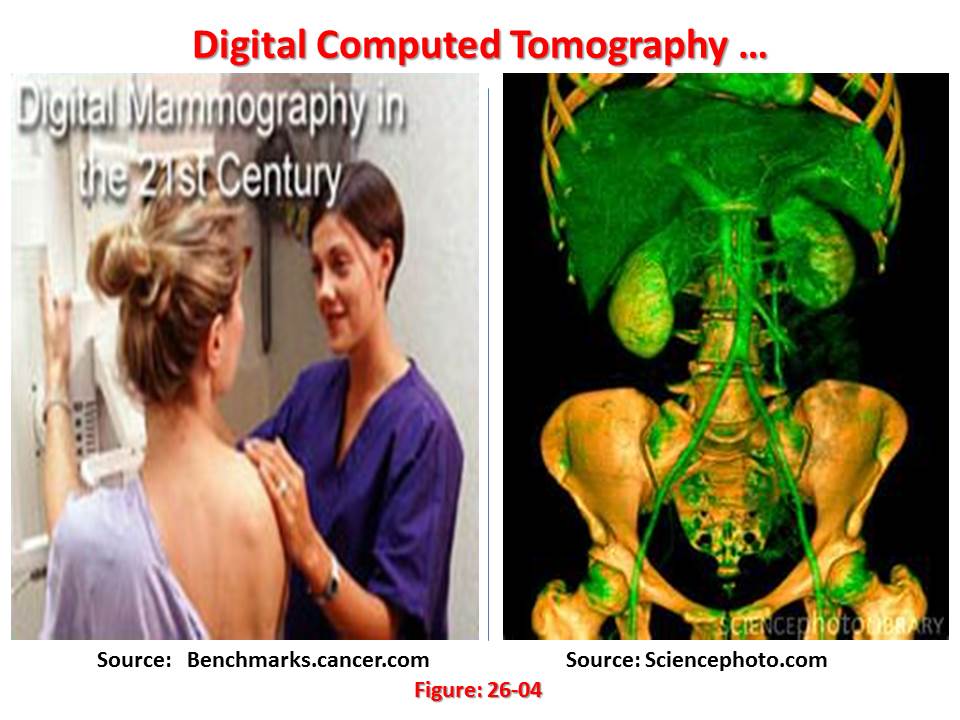 Digital imaging techniques came to x-ray in the 1980s when analog to digital (A/D) converters and computers were also adapted to conventional fluoroscopic image intensifier/TV systems. Digital imaging has led to a similar improvement and renaissance in x-ray just as it has in home and professional audio. Just as many recordings and music albums now sound sharper and better than ever on a digital compact disk (CD) player than on and older (analog) record player, digital x-rays often look sharper and cleaner than the analog version. Many of the fluoroscopic (“fluoro” for short) x-ray procedures described have benefited greatly from the addition of digital technology. Further, angiographic procedures for looking at the blood vessels in the brain, kidneys, arms and legs, and the blood vessels of the heart all have benefited tremendously from the adaptation of digital technology.