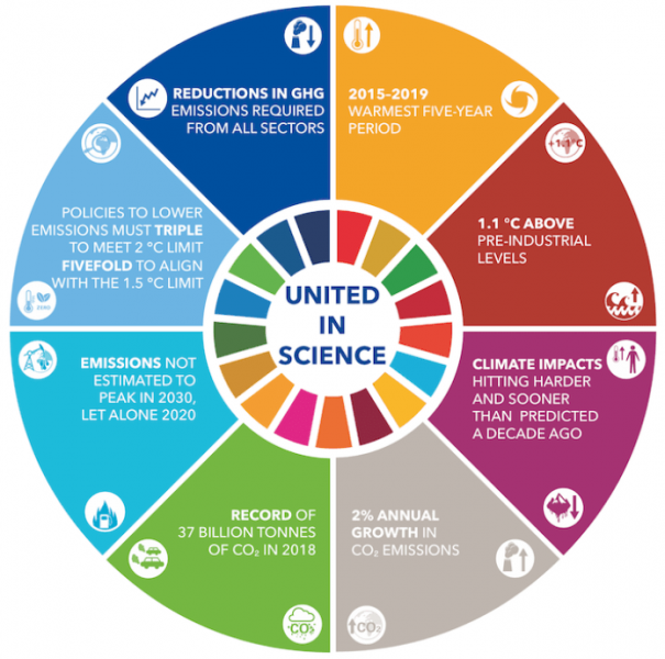 This report has been compiled by the World Meteorological Organization (WMO) under the direction of the United Nations Secretary-General to bring together the latest climate science related updates from a group of key global partner organizations – WMO, Global Carbon Project (GCP), UNESCO Intergovernmental Oceanographic Commission (UNESCO-IOC), Intergovernmental Panel on Climate Change (IPCC), UN Environment Programme (UNEP) and the Met Office. The content of each chapter is attributable to each respective organization.