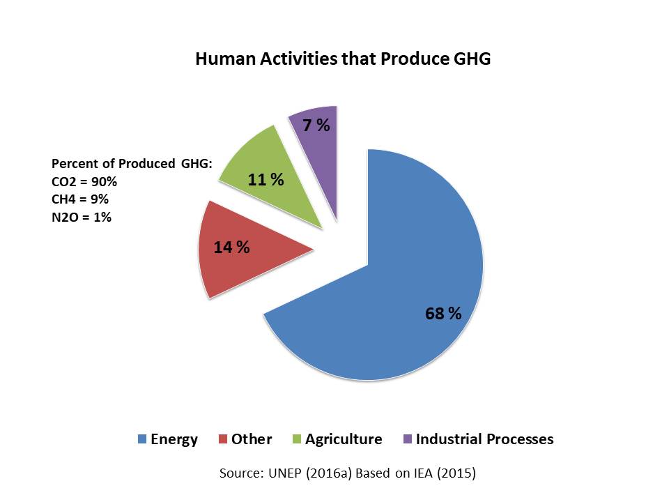 These scientists are also confident that human activities are responsible for the production of greenhouse gases (GHG). Here is a graph which illustrates the configuration of GHG: